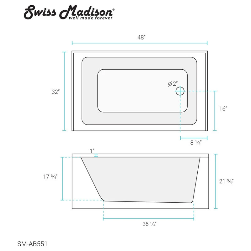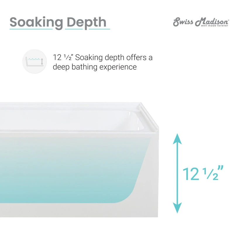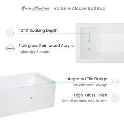 Swiss Madison Voltaire 48″x32″ Acrylic White, Alcove, Right Hand Drain, Apron Bathtub