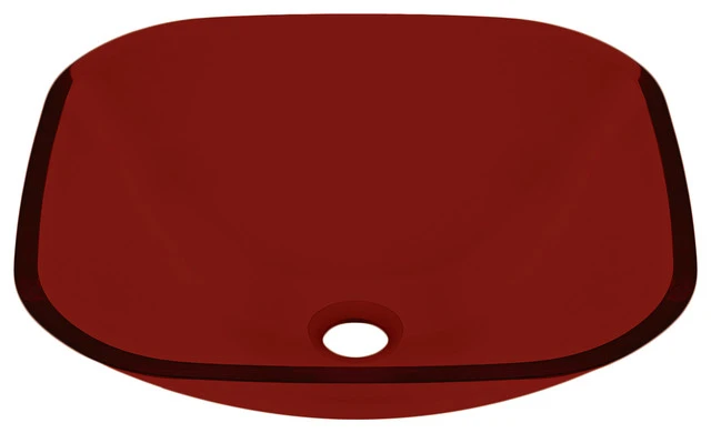 Tempered Glass Vessel Bathroom Vanity Sink Square Bowl By Table Top King, Red