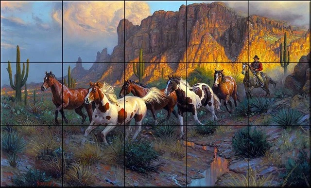 Beautiful horse tile murals and decorative horse tiles are perfect for your kitchen backsplash tile project. We have many horse tiles to choose from. Get inspired with our horse collection of tiles. Horse scenes make great tile murals and our artwork on tile of horses are great for your tile project.