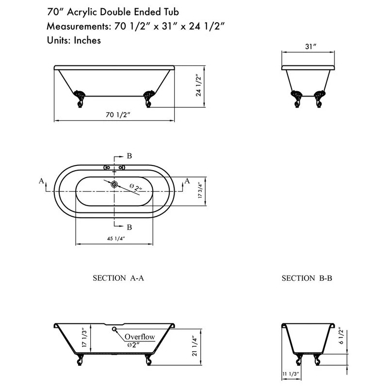 Madison Acrylic Bathtub – Clawfoot Double Ended Tub: