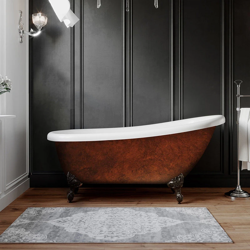 This stylish, lightweight acrylic slipper tub, the “Copper Maries, ” has a stunning faux copper finish and imperial ball and claw feet and 46 gallon capacity is the perfect selection for those looking for fashion, comfort and affordability.