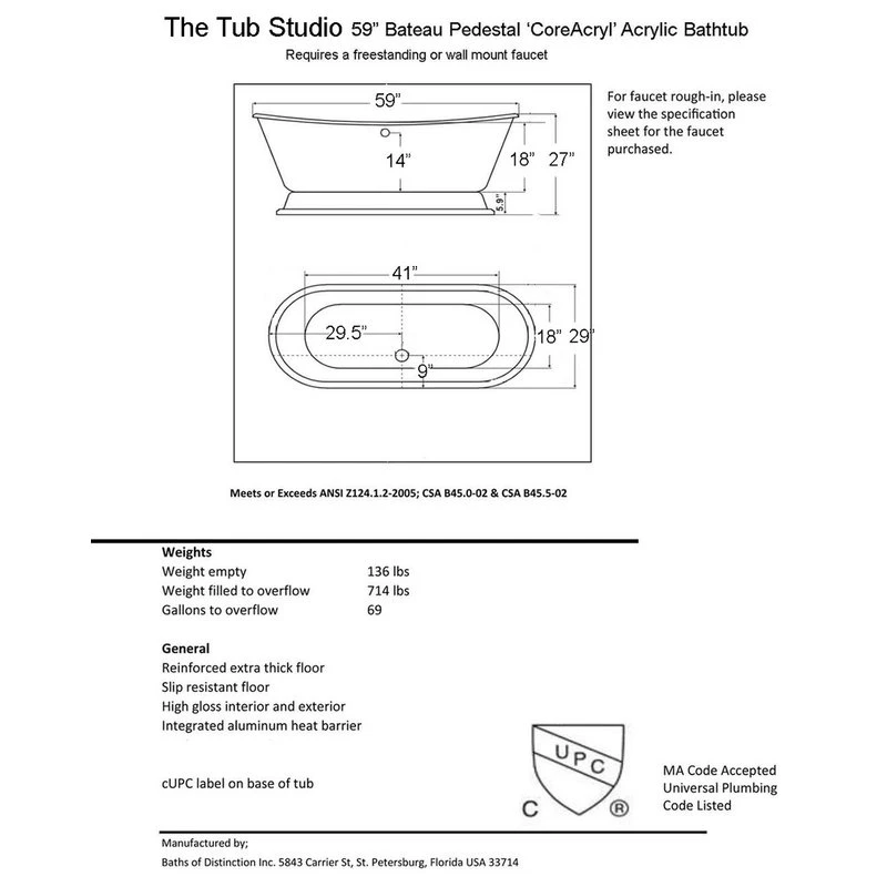 Please Note: Driver will bring crated tub from truck via lift-gate to street level at curbside. You are responsible for making arrangements to have item(s) brought into your home, garage, etc. Lift-gate service is included on our tubs. The truck driver will not bring the tub into your home.