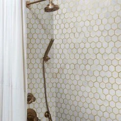 Be the first to review “Tile Generation 3″ Honeycomb Hexagon White And Gold Metal Stainless Steel Polished Marble Tile” Cancel reply