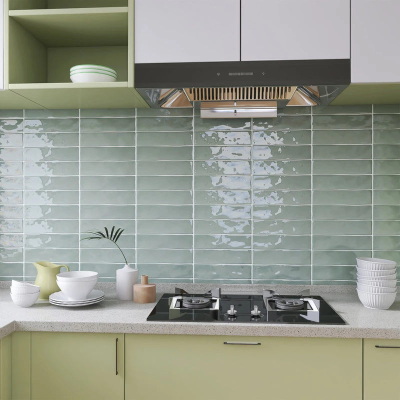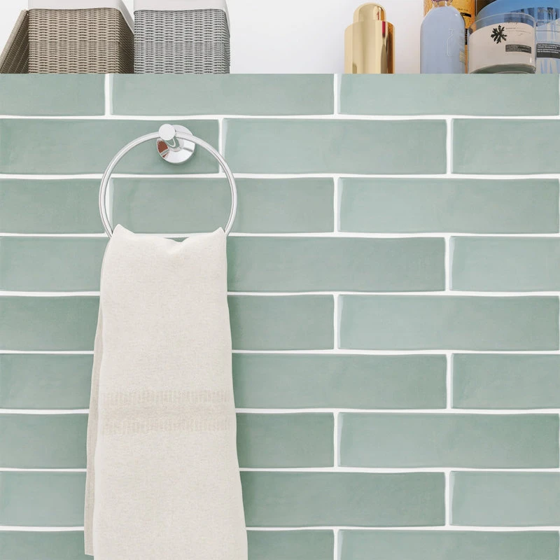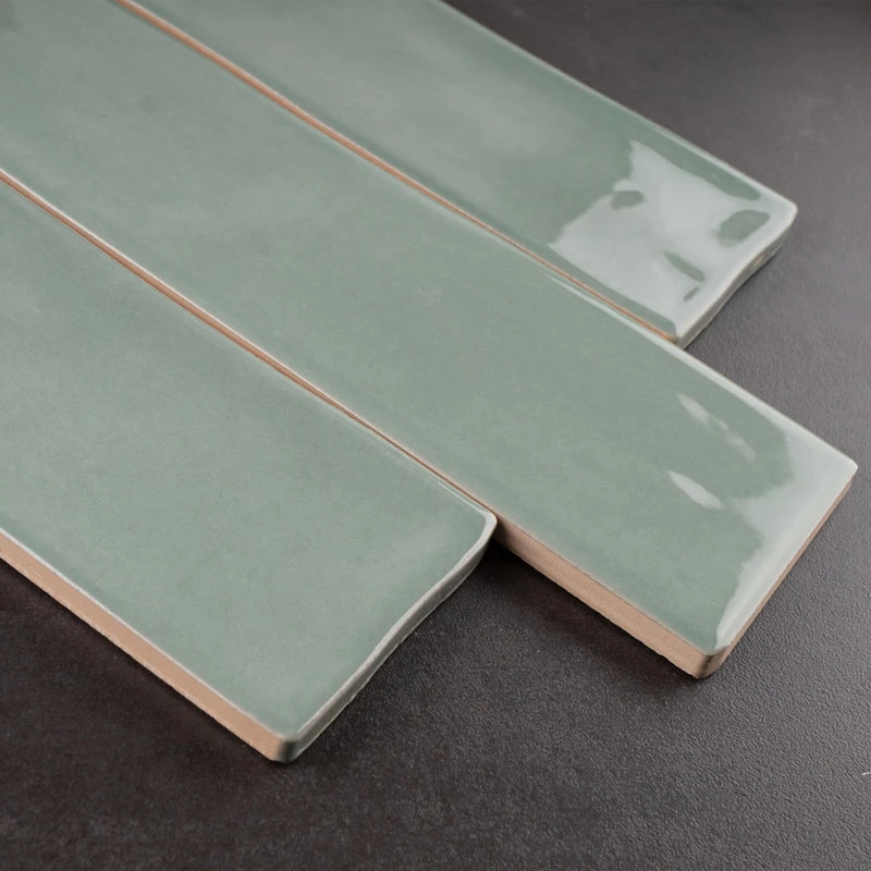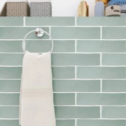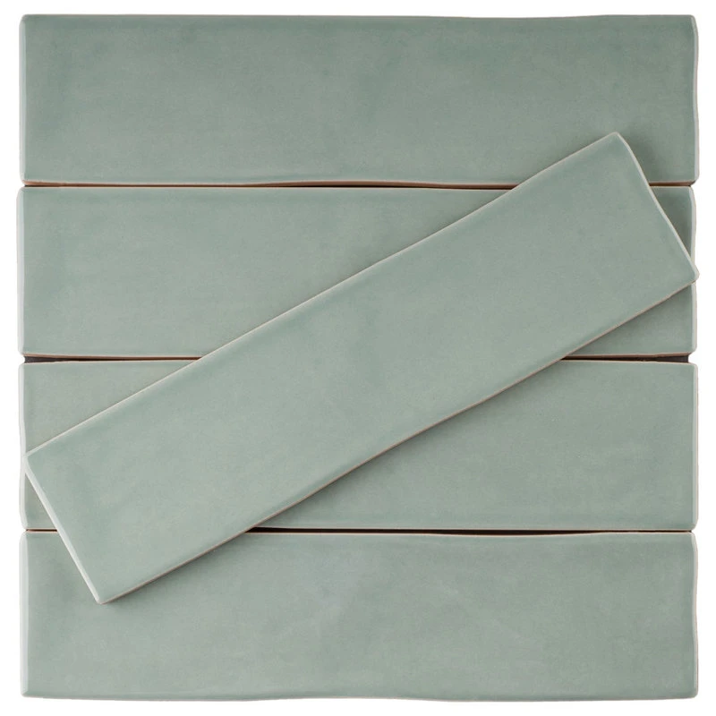 Tile Generation Kezma White Handmade Ceramic Wall Tile 3″x12″ Subway Tile, Green, 1 Box