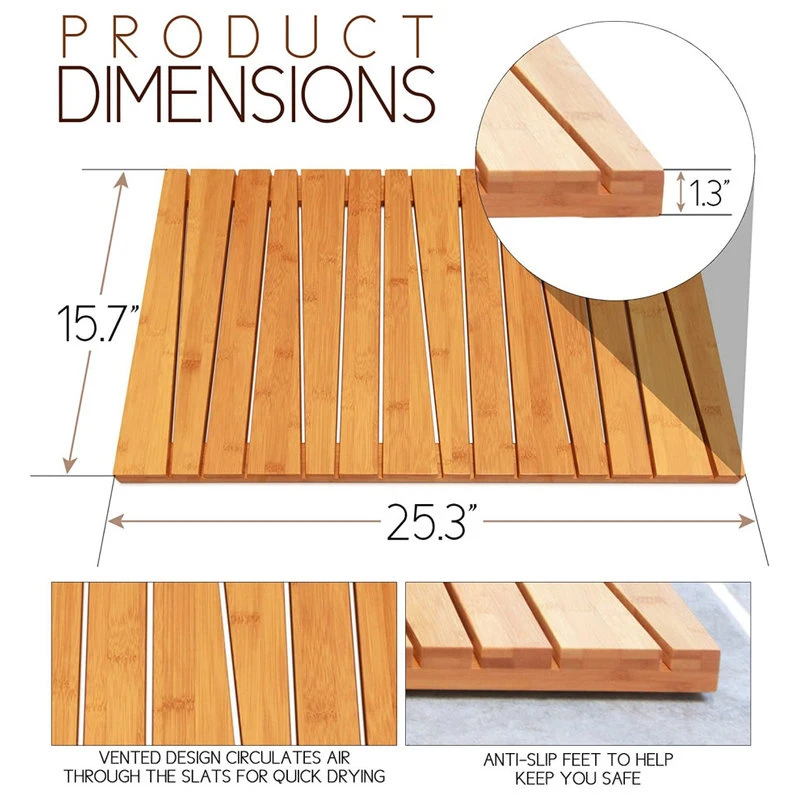 - Perfect Size for All Bathrooms, this sturdy mat is 25.3” L x 15.7” W x 1.3” H inches.
