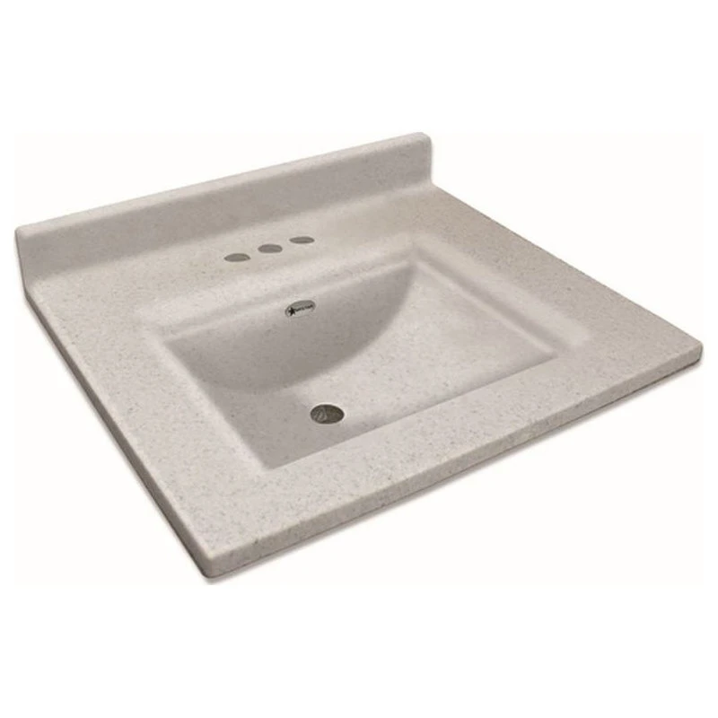 - Includes backsplash and integrated cultured marble bowl.