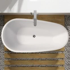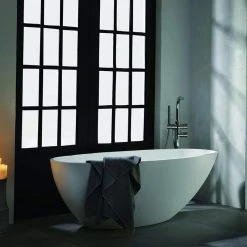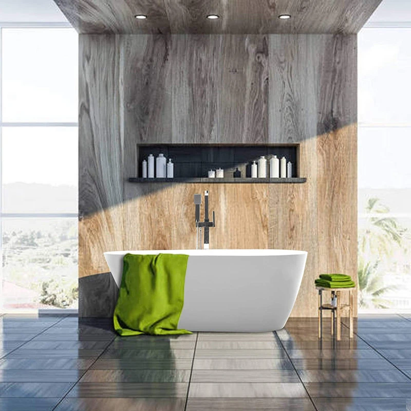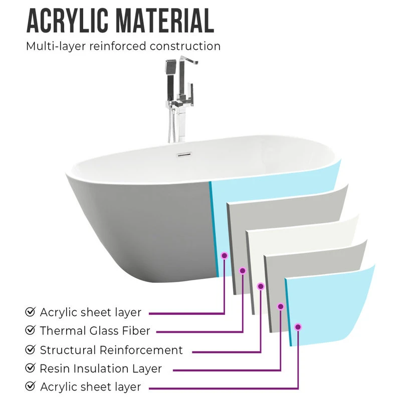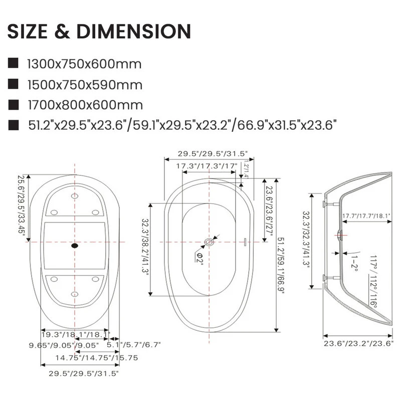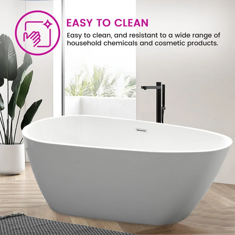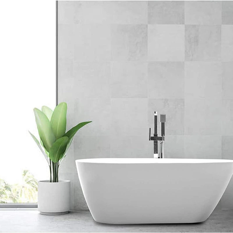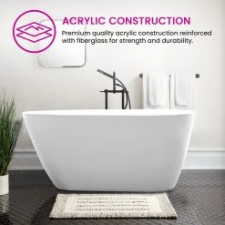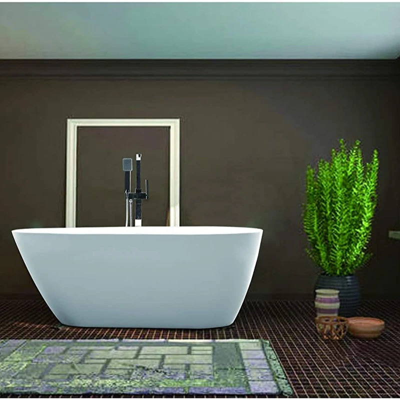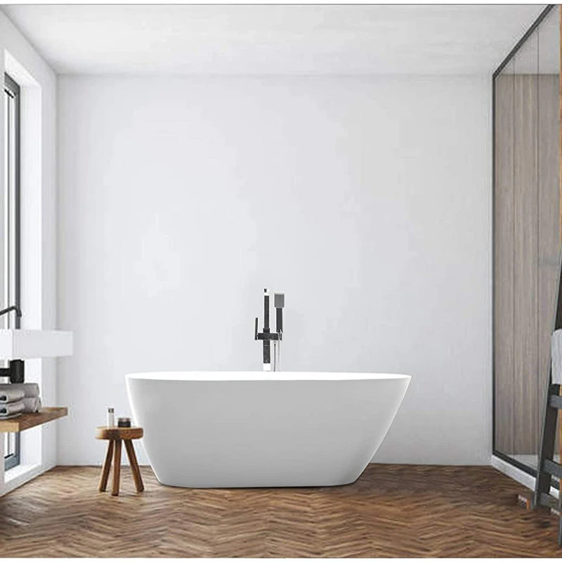 - 59″ freestanding tub with chrome pop-up drain, chrome overflow and flexible drain hose