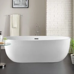 - 59″ freestanding tub with chrome pop-up drain, chrome slotted overflow and flexible drain hose