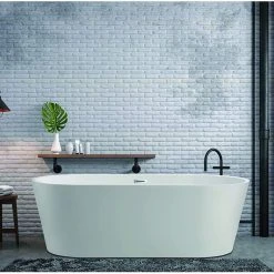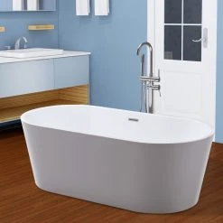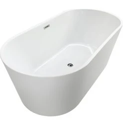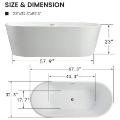 - 68″ freestanding tub with chrome pop-up drain, chrome slotted overflow and flexible drain hose
