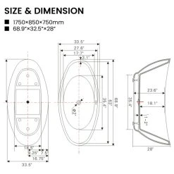- Dimensions: W 68.9″ x D 33.5″ x H 27.5″
