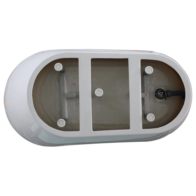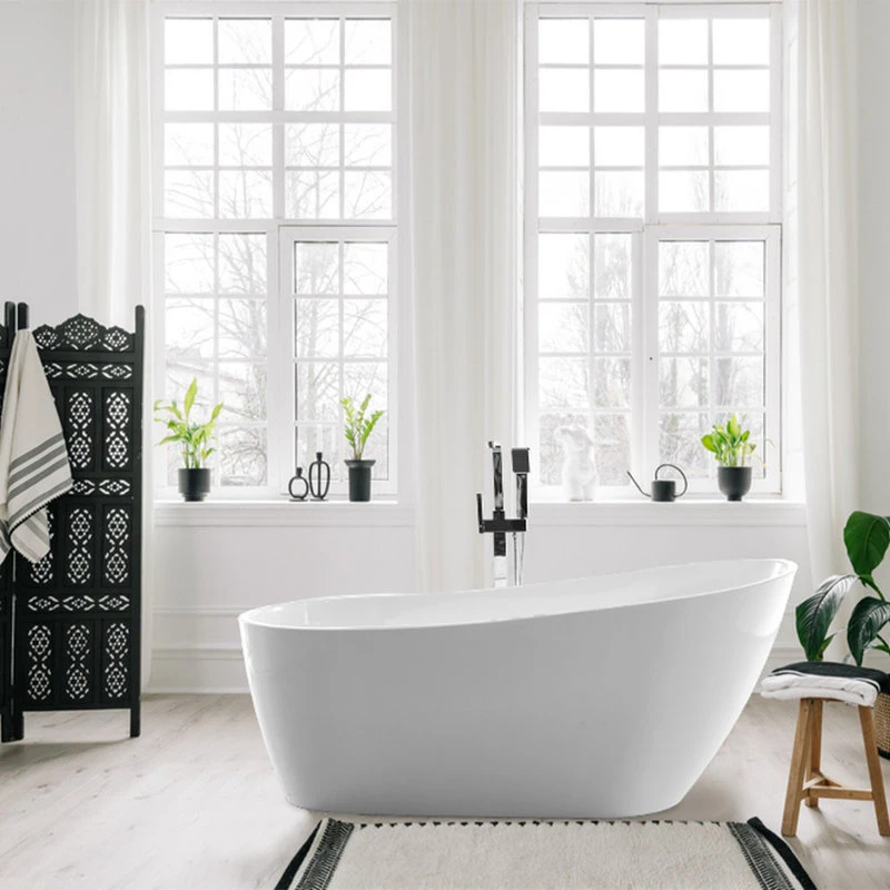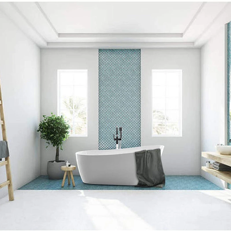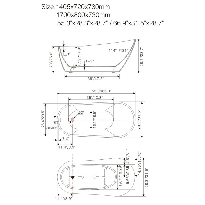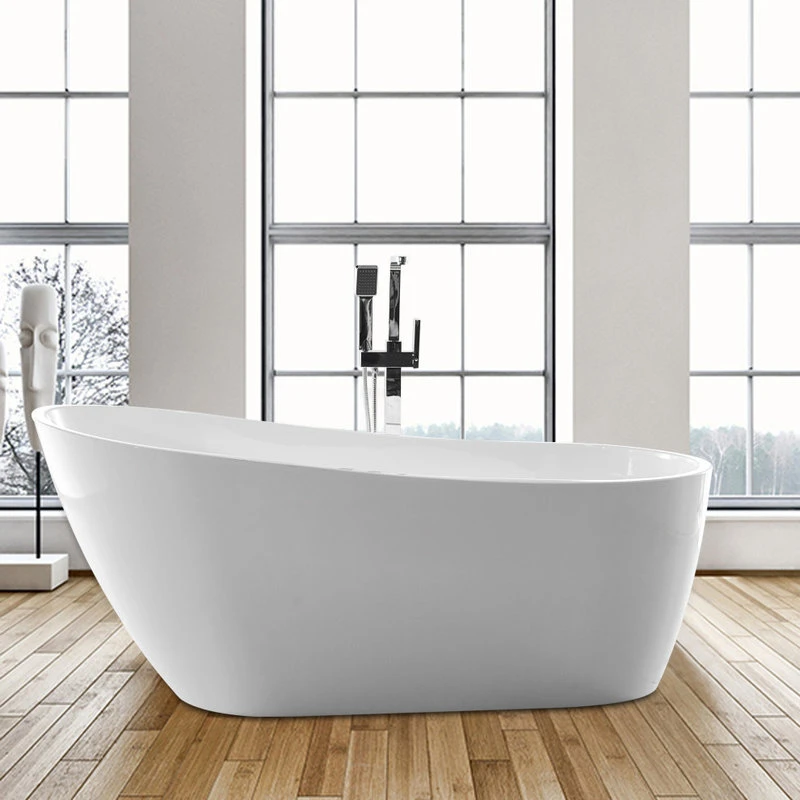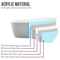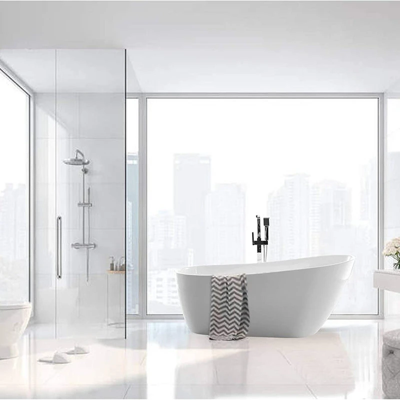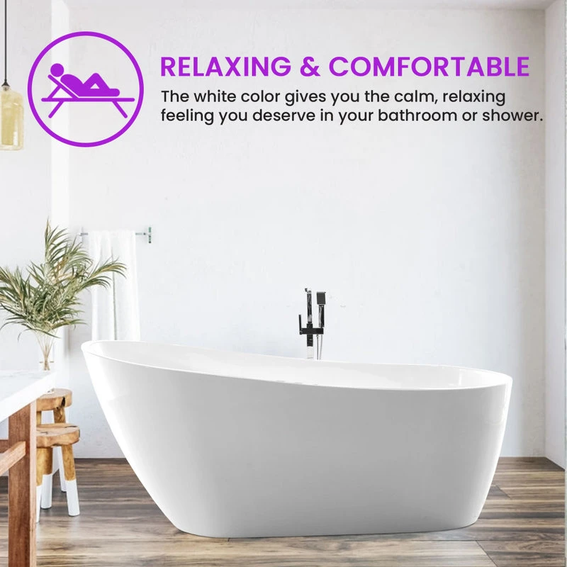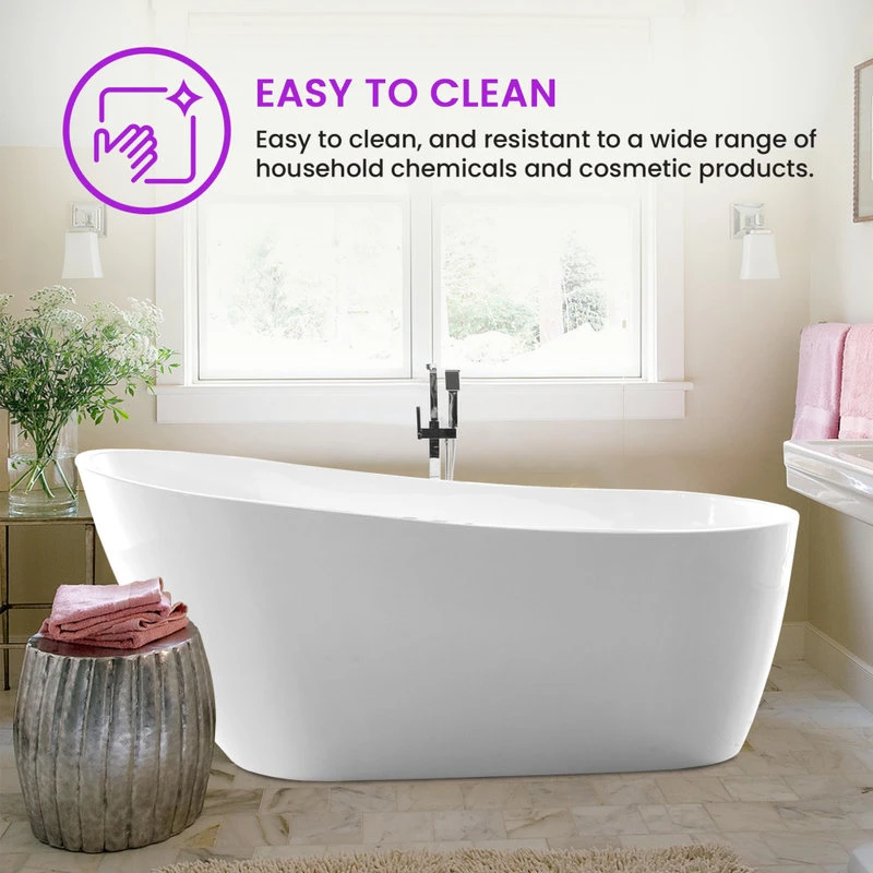- 67″ freestanding tub with chrome pop-up drain, chrome slotted overflow and flexible drain hose