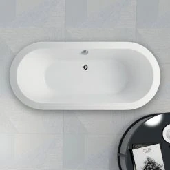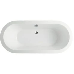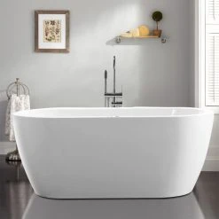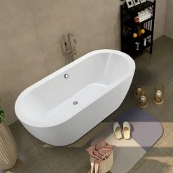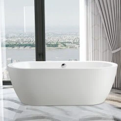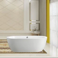 - 68″ freestanding tub with chrome pop-up drain, chrome overflow and flexible drain hose