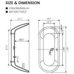 - Dimensions: W 68″ x D 30.7″ x H 23.3″
