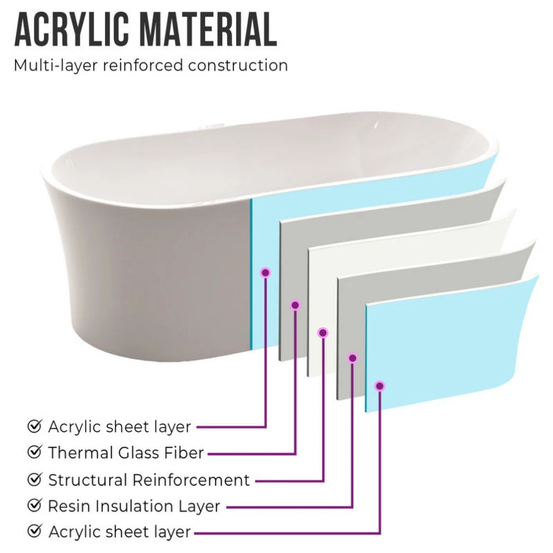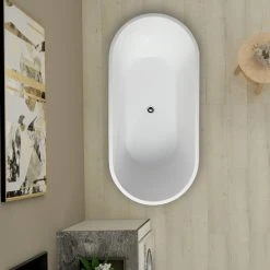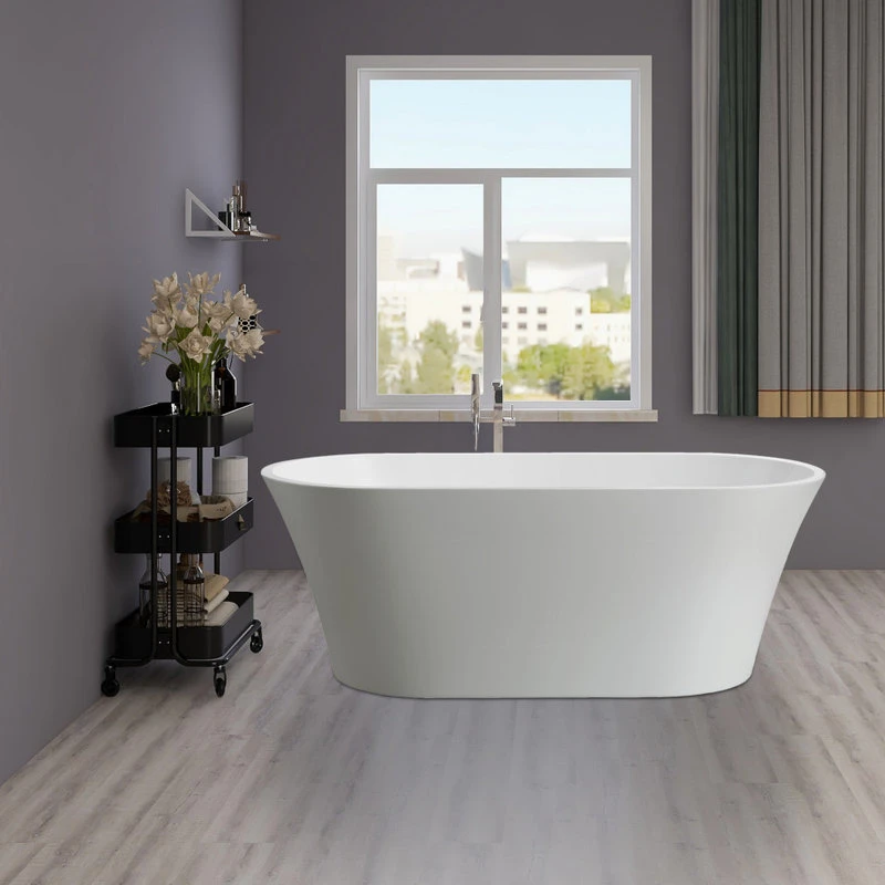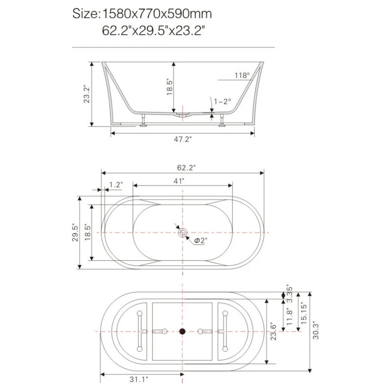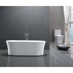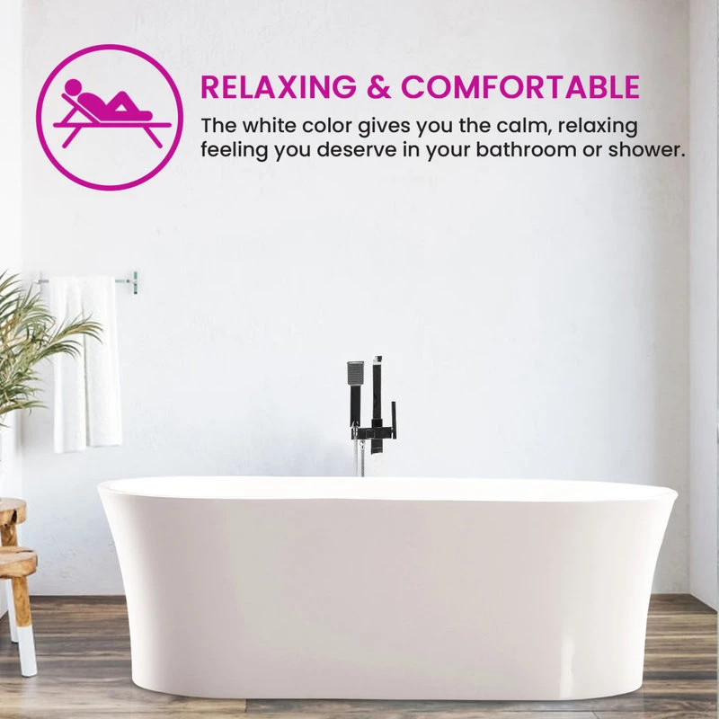 - 63″ freestanding tub with chrome pop-up drain and flexible drain hose
