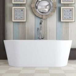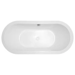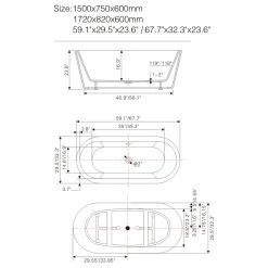 - 59″ freestanding tub with chrome pop-up drain, chrome round overflow and flexible drain hose