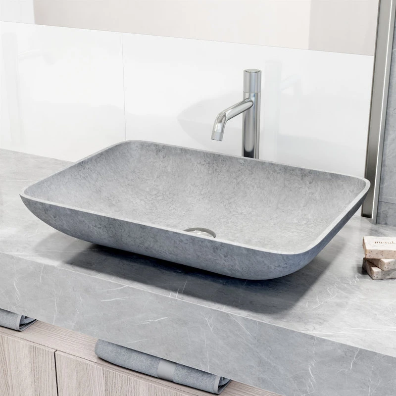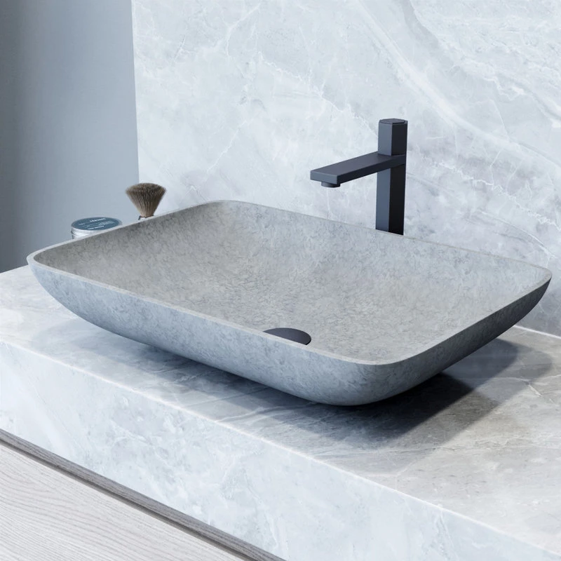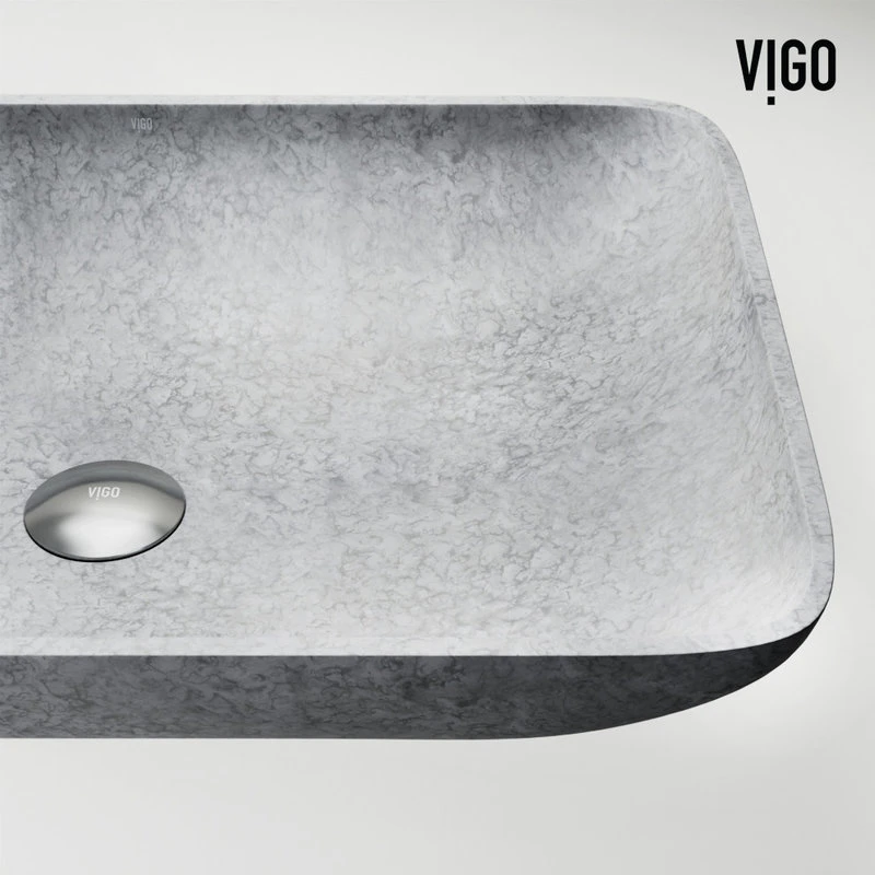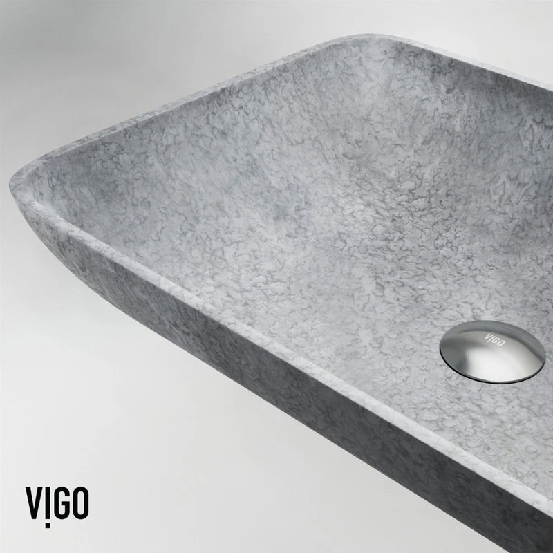 VIGO presents a beautiful bathroom vessel sink handcrafted from the Concreto Stone blend making this sink more durable and longer-lasting than traditional sink materials such as ceramic. VIGO Concreto Stone’s neutral gray color and rectangular shape complement any bathroom vessel faucet, wall mount, or countertop. Its enhanced durability ensures it remains a staple piece in your bathroom. The Concreto Stone Collection is ideal for traditional, transitional, and modern bathroom spaces.