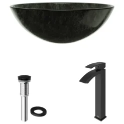 - The VIGO Gray Onyx Glass Vessel Sink and Duris Faucet Set in Matte Black Finish provides any bathroom with a unique and distinctive style.