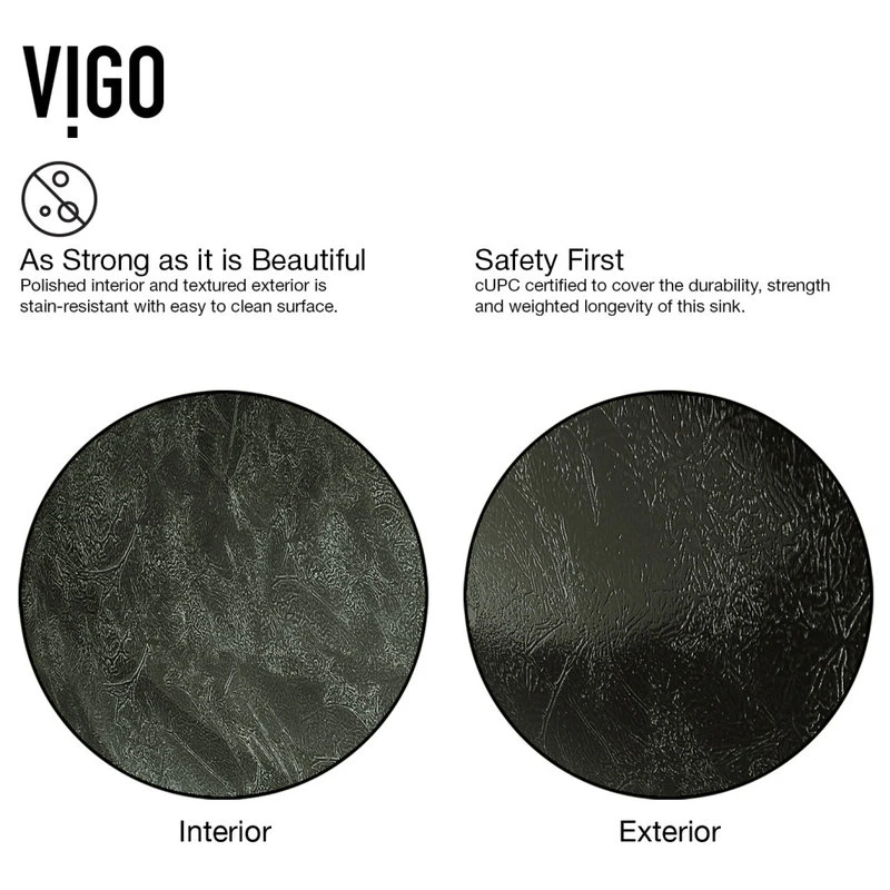 - VIGO finishes resist corrosion and tarnishing, exceeding industry durability standards