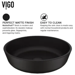 - MATTE SHELL SINK CONSTRUCTION: Vessel sink is made from VIGO’s proprietary Matte Shell a non-porous, stain-resistant, opaque tempered glass