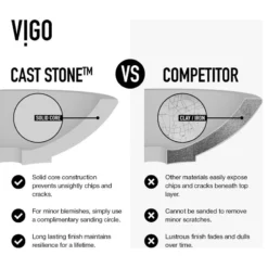 - HANDMADE SINK: VIGO’s Cast Stone composite bathroom vessel sinks are polished by hand with acute attention to detail