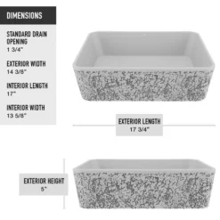 Durably built from all-natural composite, VIGO CastStone – Vessel Bowl Bathroom Sinks offer modernity at its finest. This model is the Zinnia, a distinctive rectangular design featuring a high-end concrete composite. Solid to the core and non-porous, this hand crafted material expertly resists scratches, stains, and impact. Impressive in build and made to last for years of use, this sink is impeccable in both style and structure. It has a smooth, hand polished interior and a detailed, textured exterior. This sink is easy to keep clean with standard household products and pairs perfectly with any VIGO Vessel or Wall Mount Bathroom Faucet. Complete this set with a matching finish pop-up drain without overflow for a total bathroom sink set.