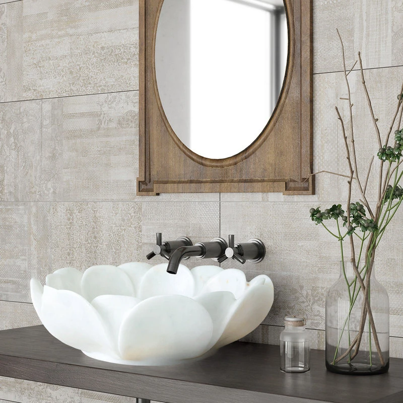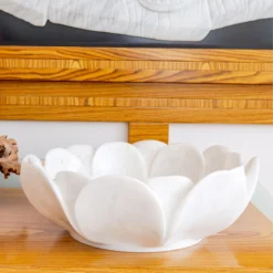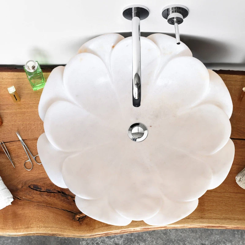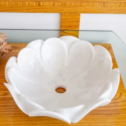 Carrara White Marble Flower Shape Sink Bowl Polished (D)17″ (H)6″- Modern Aesthetic Marble Round Sink Handcrafted in Turkey – Carrara White Marble Flower Shape Sink Polished Bathroom Sinks Above Counter.