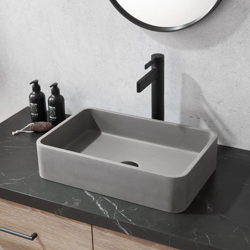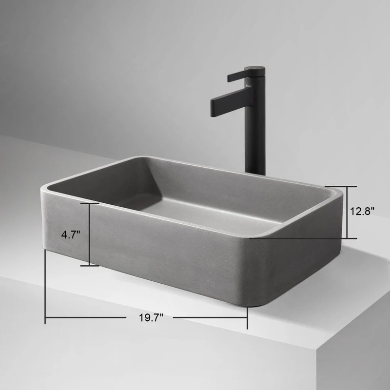 Vinnova Avila Grey Concrete Rectangular Vessel Bathroom Sink