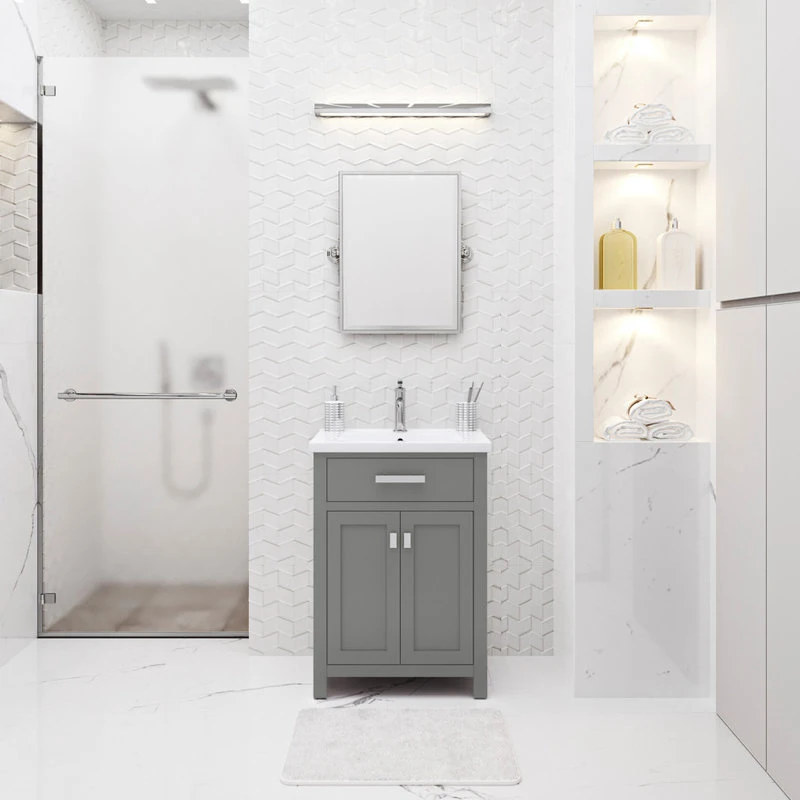 Water Creation 24″ Single Vanity With Double Door Without Faucet, Cashmere Gray