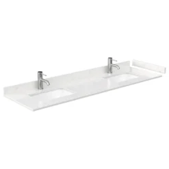 - Fully-extending under-mount soft-close drawer slides. Concealed soft-close door hinges. Light-Vein Carrara Cultured Marble counter includes 3″ backsplash and reversible sidesplash