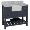 Constructed of environmentally friendly, zero emissions solid wood, engineered to prevent warping and last a lifetime. 12-stage wood preparation, sanding, painting and finishing process. Highly water-resistant low V.O.C. sealed finish. Beautiful transitional styling that compliments any bathroom. Practical Floor-Standing Design.