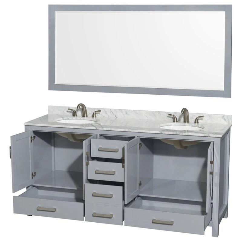Minimal assembly required. Deep Doweled Drawers. Fully-extending under-mount soft-close drawer slides. Concealed soft-close door hinges. White Carrara Marble Countertop.
