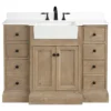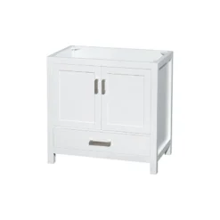 - Plenty of storage space. Two (2) functional doors. One (1) functional drawer. Faucet(s) not included. 3″ backsplash.